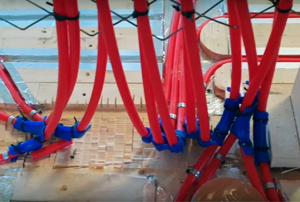 В продольные пазы устанавливаются трубы теплого пола, из сшитого полиэтилена по которым проходит теплоноситель.